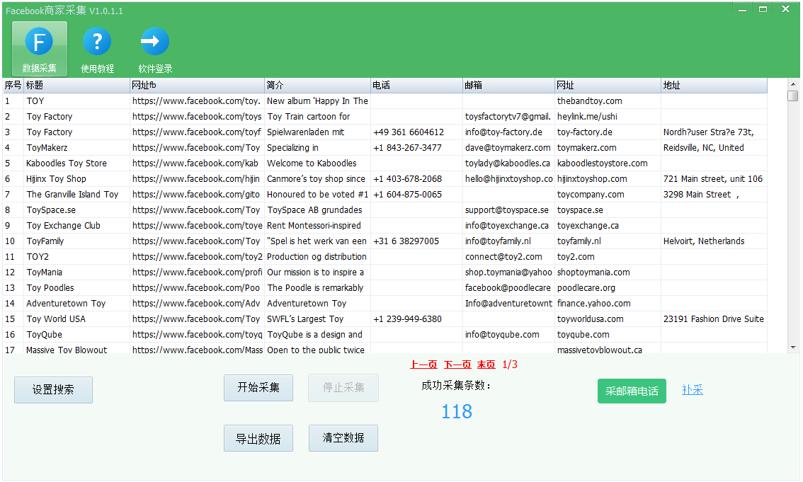 facebook脸书数据采集器,是一款专门采集facebook脸书内容的软件工具。功能有脸书电话采集,脸书商户采集, 脸书内容采集,脸书邮箱采集,是一款好用的facebook手机号采集软件。功能有facebool脸书邮箱采集,facebool脸书电话采集,facebool联系方式抓取,一键导出到excel表格。