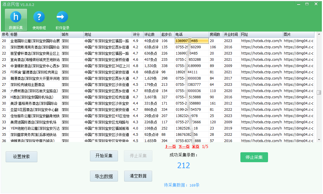 酒店商家数据采集工具软件,是可以采集全国各城市的酒店数据和民宿商家数据。具体内容包括名称、地址、价格、酒店房间数、联系方式等,比如携程酒店数据采集。工具软件代替人工复制粘贴,效率更高。