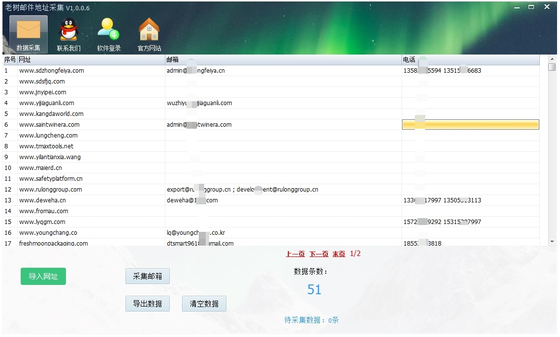 当我们看到某些网站或网页上有很多邮箱时,或者你的手上有一批企业官网,需要对他们的邮箱进行抓取时,那么这款工具,就是你的首款。她支持批量导入网址,然后开始采集,支持复杂的网页结构,采集效果好。支持同时采集邮箱地址和手机号。是一款功能强大的邮箱采集工具软件。